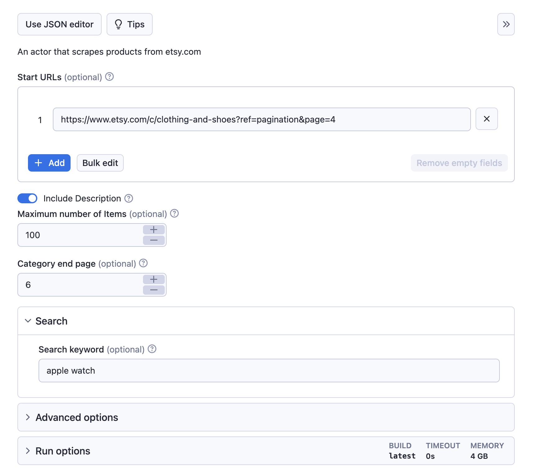 Try Etsy Scraper now on Apify. Free tier available with no credit card required.