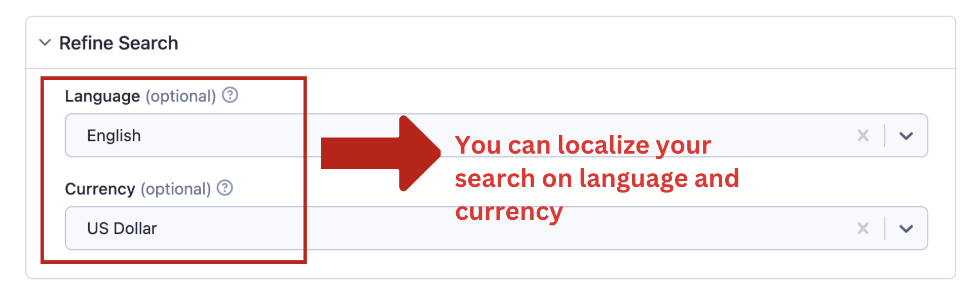 You can localize your search on language and currency.